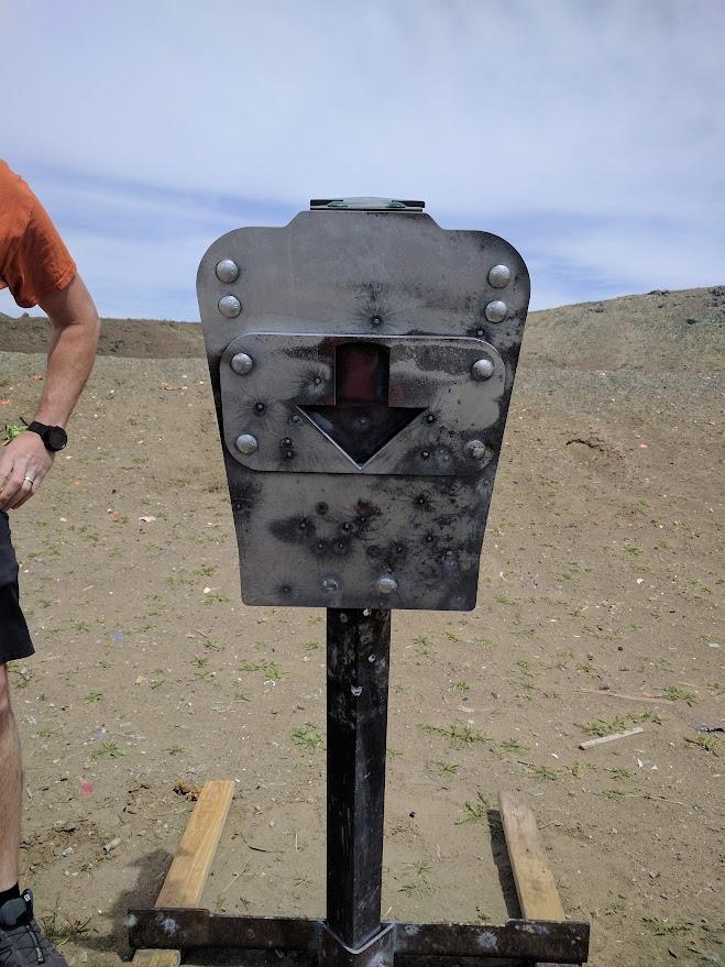 Known as the BIGMO, this precision reactive target is designed with a 7″ reactive center of mass and a ~6×6″ reactive head on a 18×24″ torso. Intended for use with rifles.