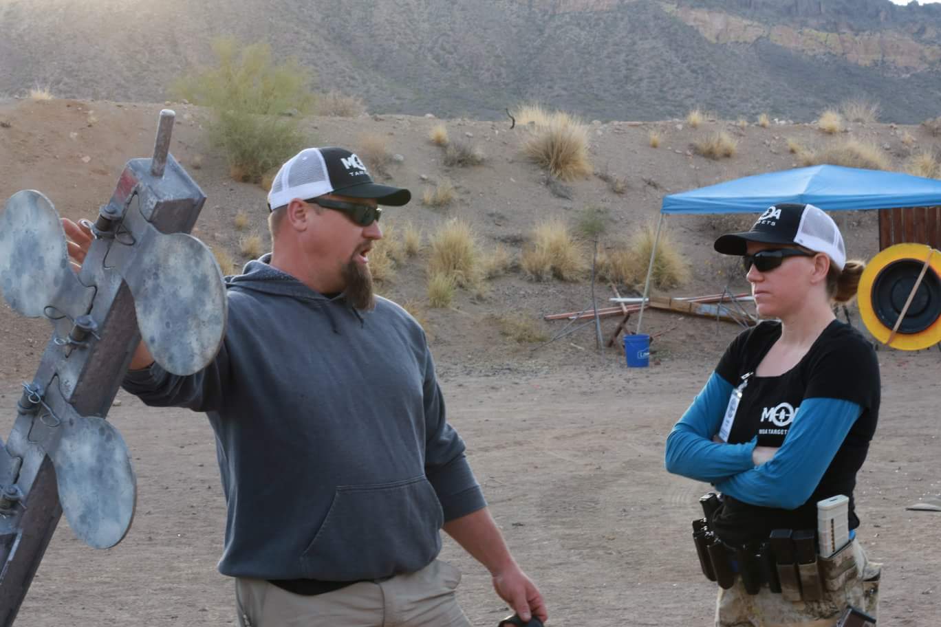 The Polish Plate Rack, described by one user as “some wonky-assed swinging plates of death” is constructed of 3/8″ AR500 steel, with a solid 1″ steel pivot shaft, automotive bearings, and a one piece construction hub. The stand, upright, and hub assembly is the same proven system as the MOA Red Neck Star. This eight paddle target system is designed for use with all pistols at 12 yards, and all shootable areas other than the stand and upright are constructed of 3/8” AR500.