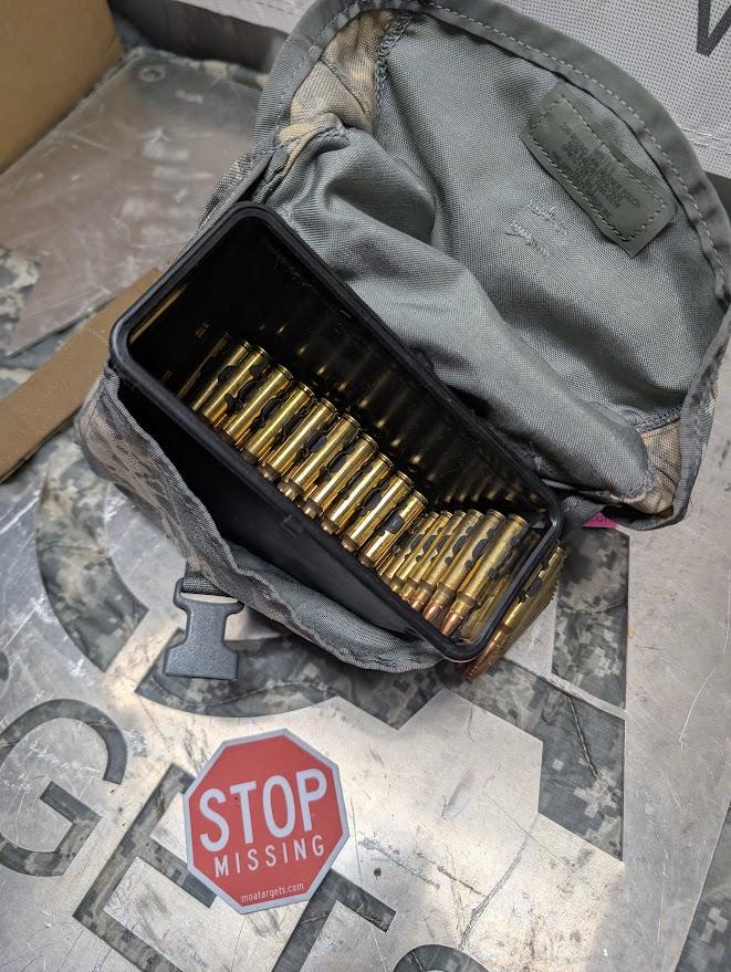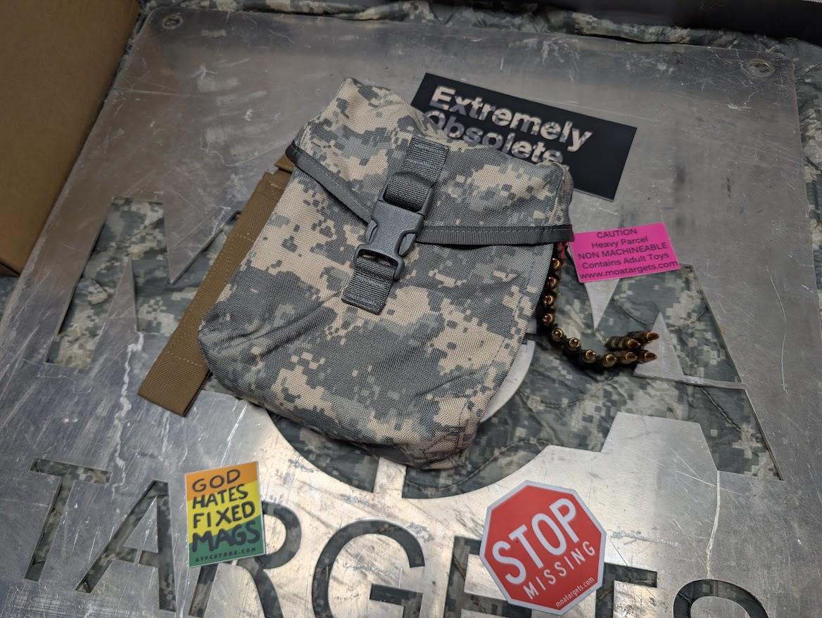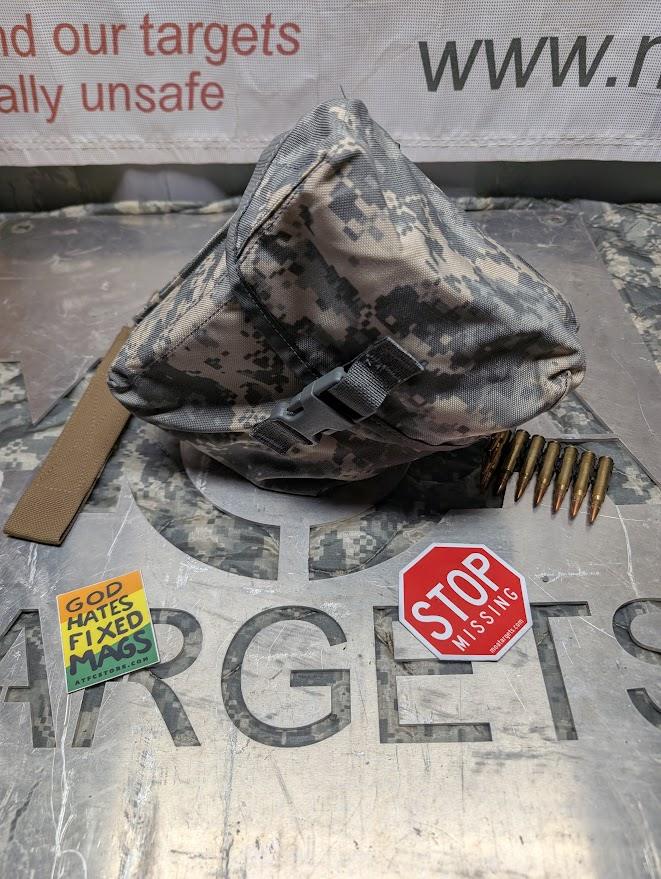 Military surplus UCP pattern 200 round SAW gunner pouch. This fits 200 rounds or a M249 ammo drum.