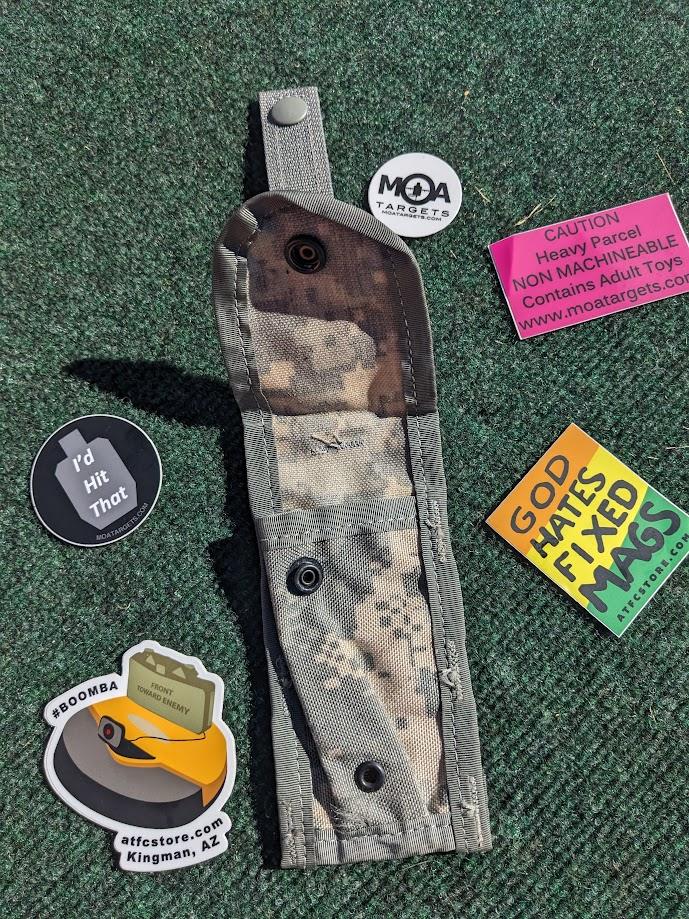 Military surplus UCP pattern 9mm single magazine pouch. Necessary for your GWOT LARP, otherwise a bit cumbersome. It holds a single mag, and therefor is appropriate for anyone wanting to do GWOT LARP. Single. Forever.